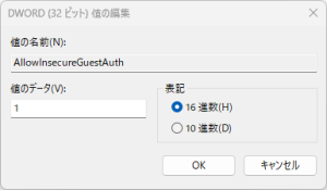 先ほどの画面に戻ると「安全でないゲストログオンを有効にする」の箇所が「有効」に変わっています。