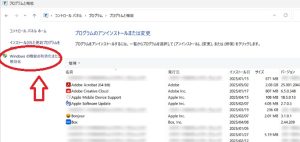 ②WINDOWS機能の有効かまたは無効可をクリックします