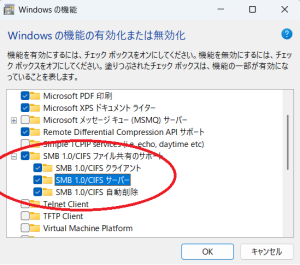 ③一覧の中から SMB 1.0/CFSクライアントを展開し全てのチェックを入れます